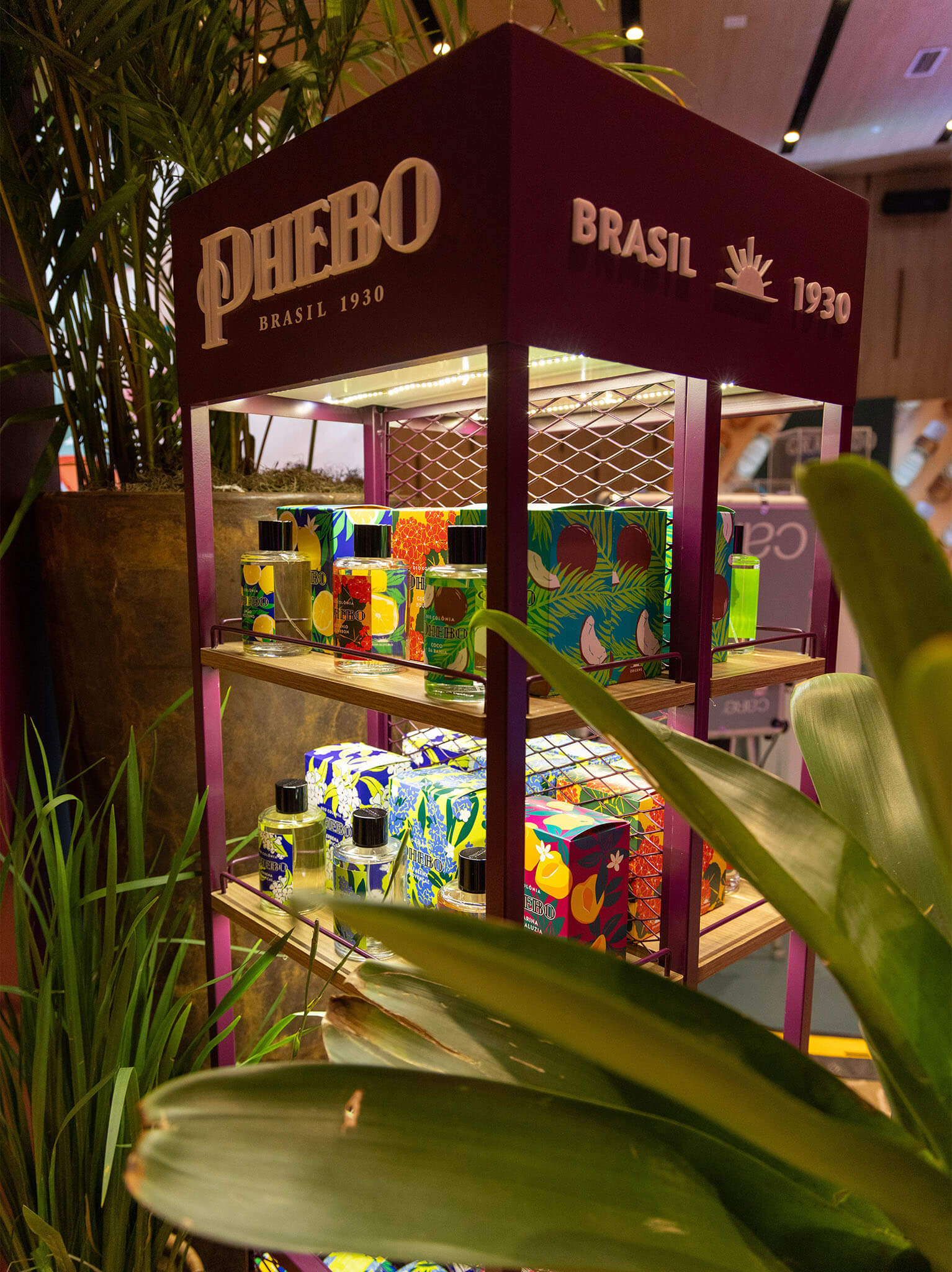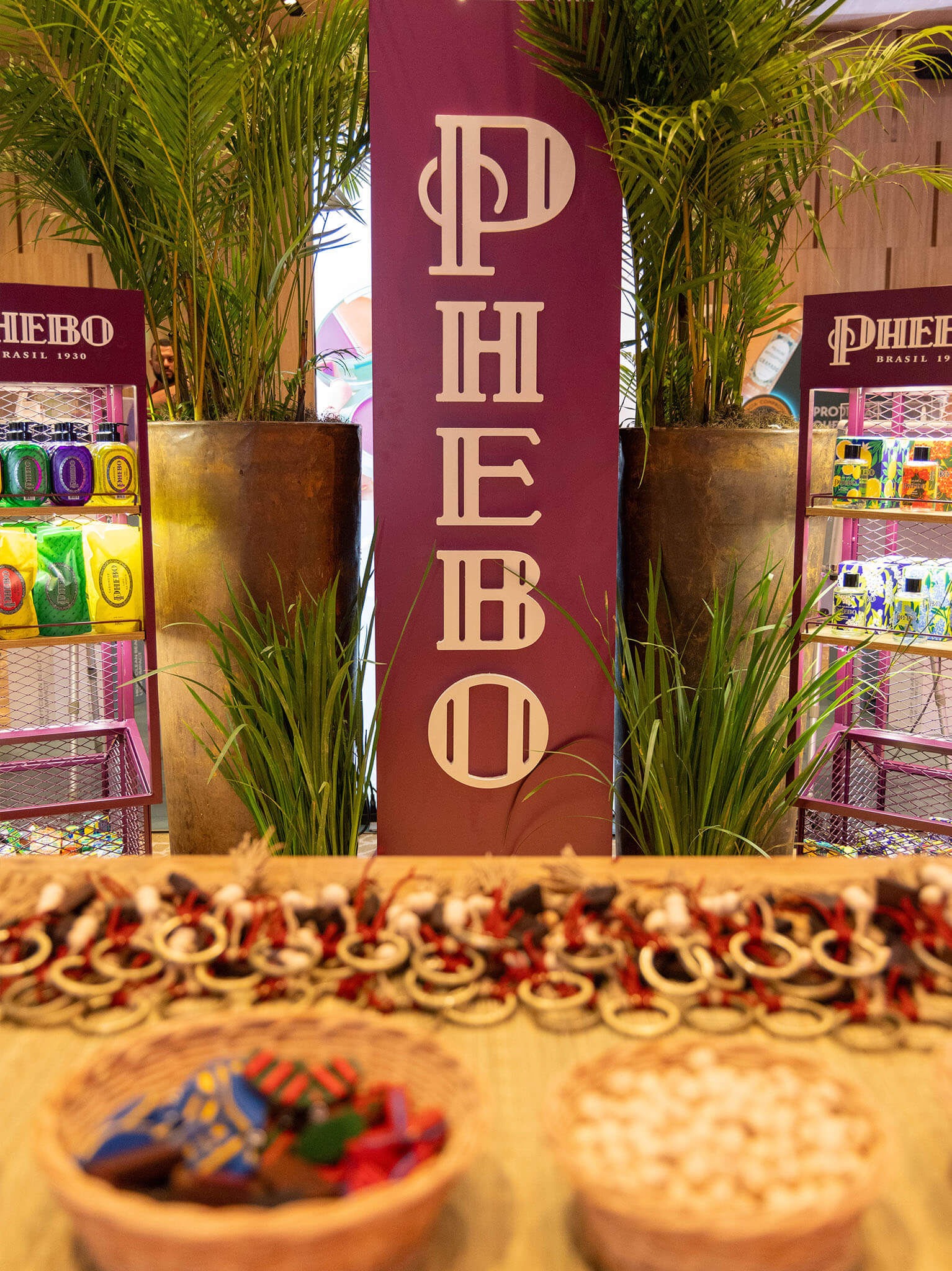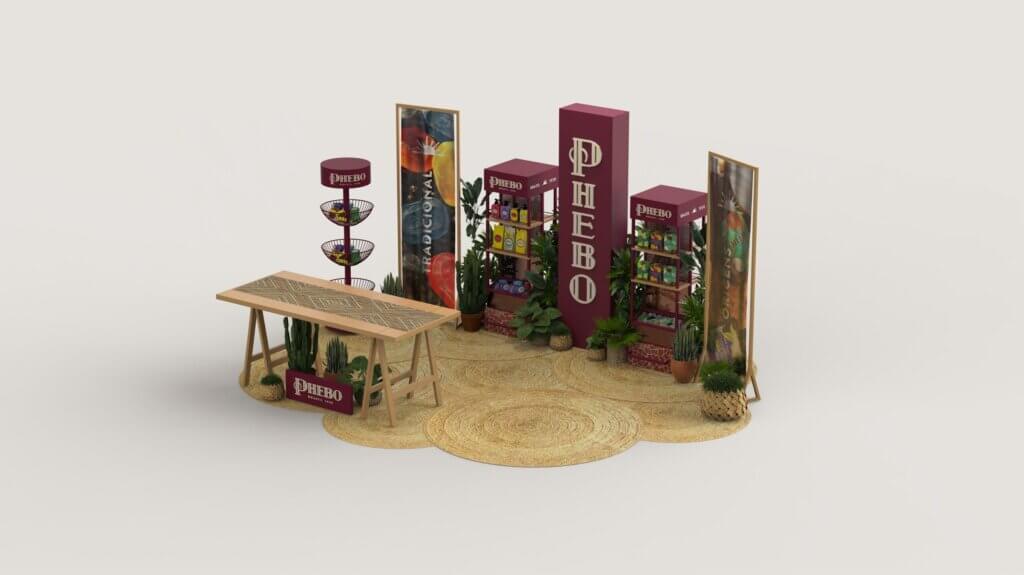 Para a Convenção de Vendas do Trade, desenvolvi o projeto do stand da Phebo com foco na apresentação dos novos móveis de ponto de venda (PDV), que ganham agora uma identidade mais sofisticada, com acabamento em tom bordô e estruturas metálicas. Essa reformulação marca uma nova fase da marca, mais elegante e contemporânea, sem abrir mão de suas raízes.